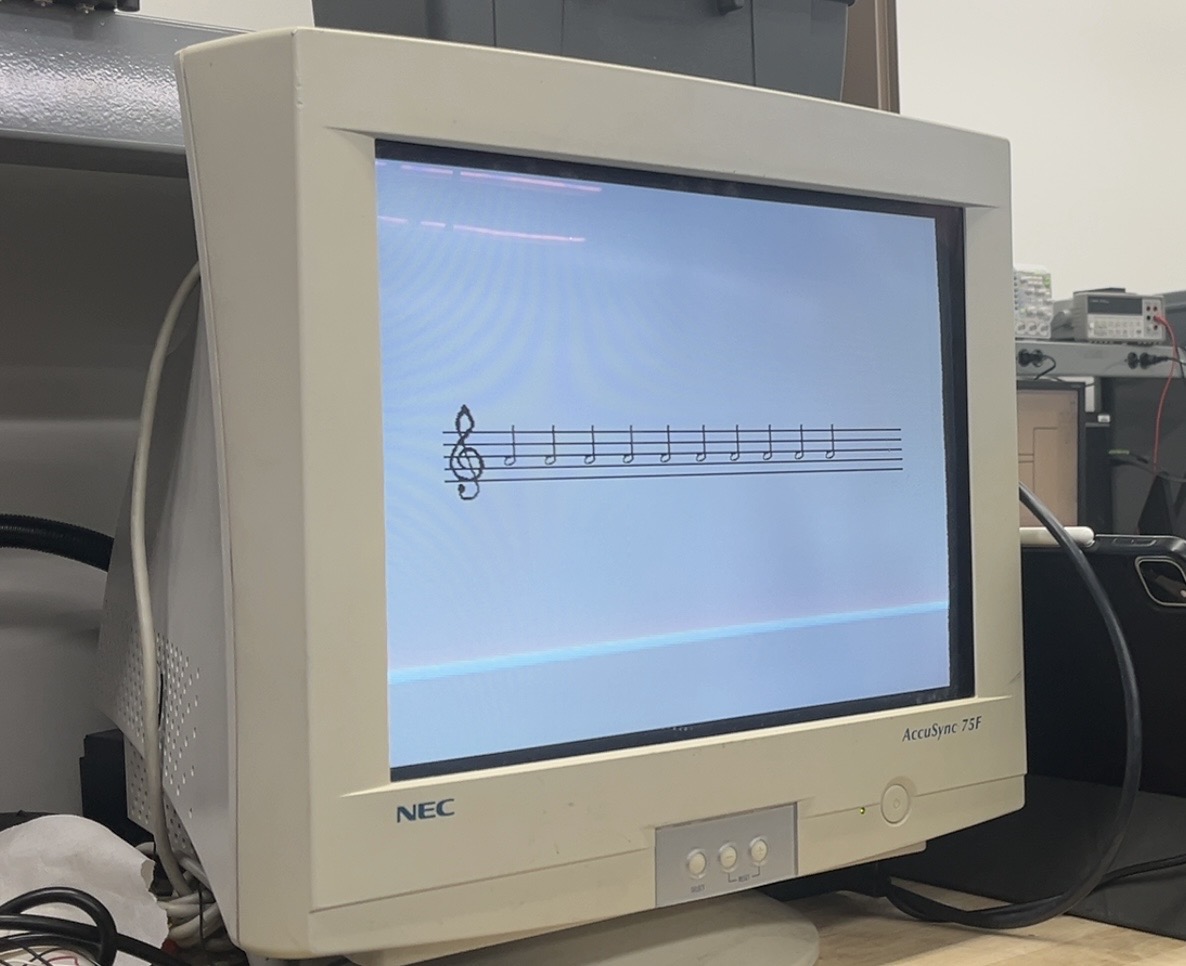 The VGA top module is split into the Phase-Locked Loop (PLL) which generates the proper clock speed for VGA, the VGA control module, which generates the horizontal and vertical sync signals based on our pixel resolution, and a music score module which draws the score lines, treble clef, and notes.